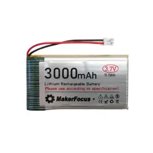 A good battery size to start with is a 3000 mAh Lithium Polymer battery. Be sure to select one with JST Type PH 2.0 Plug.